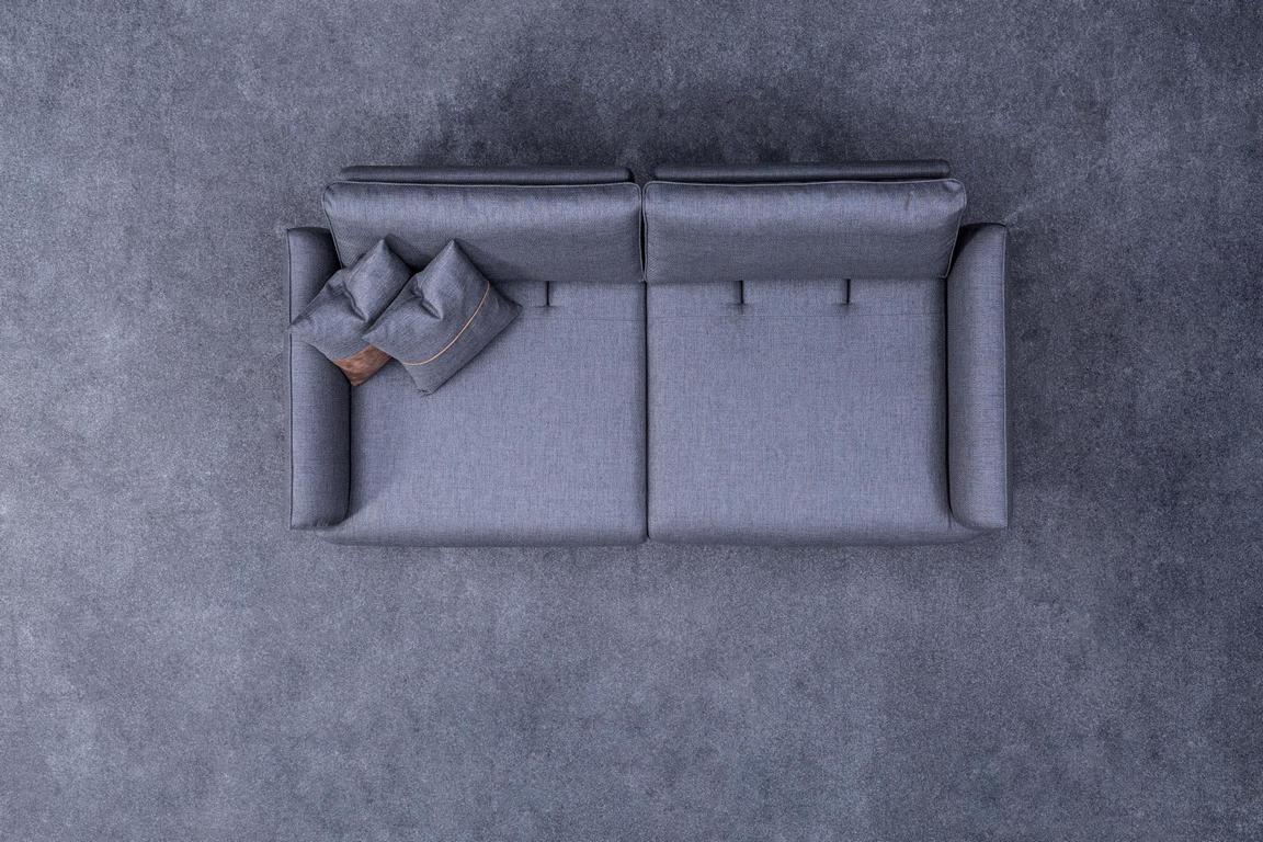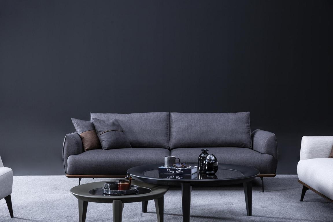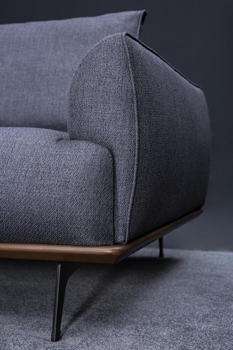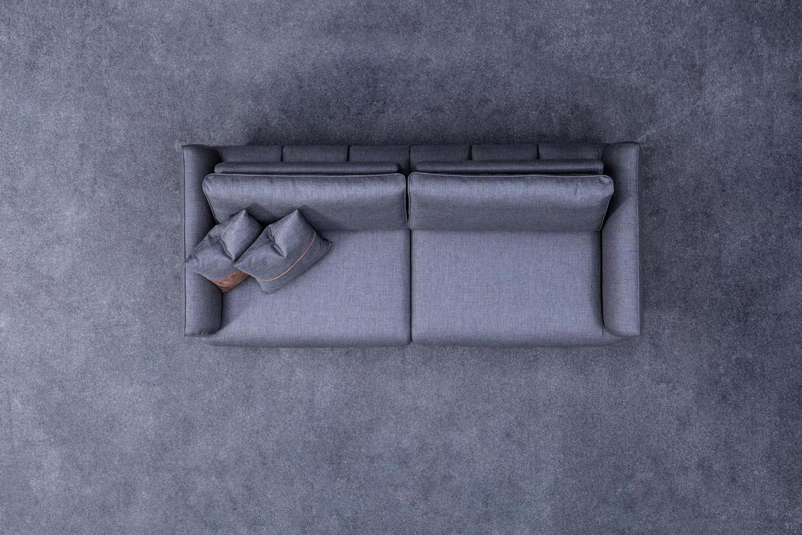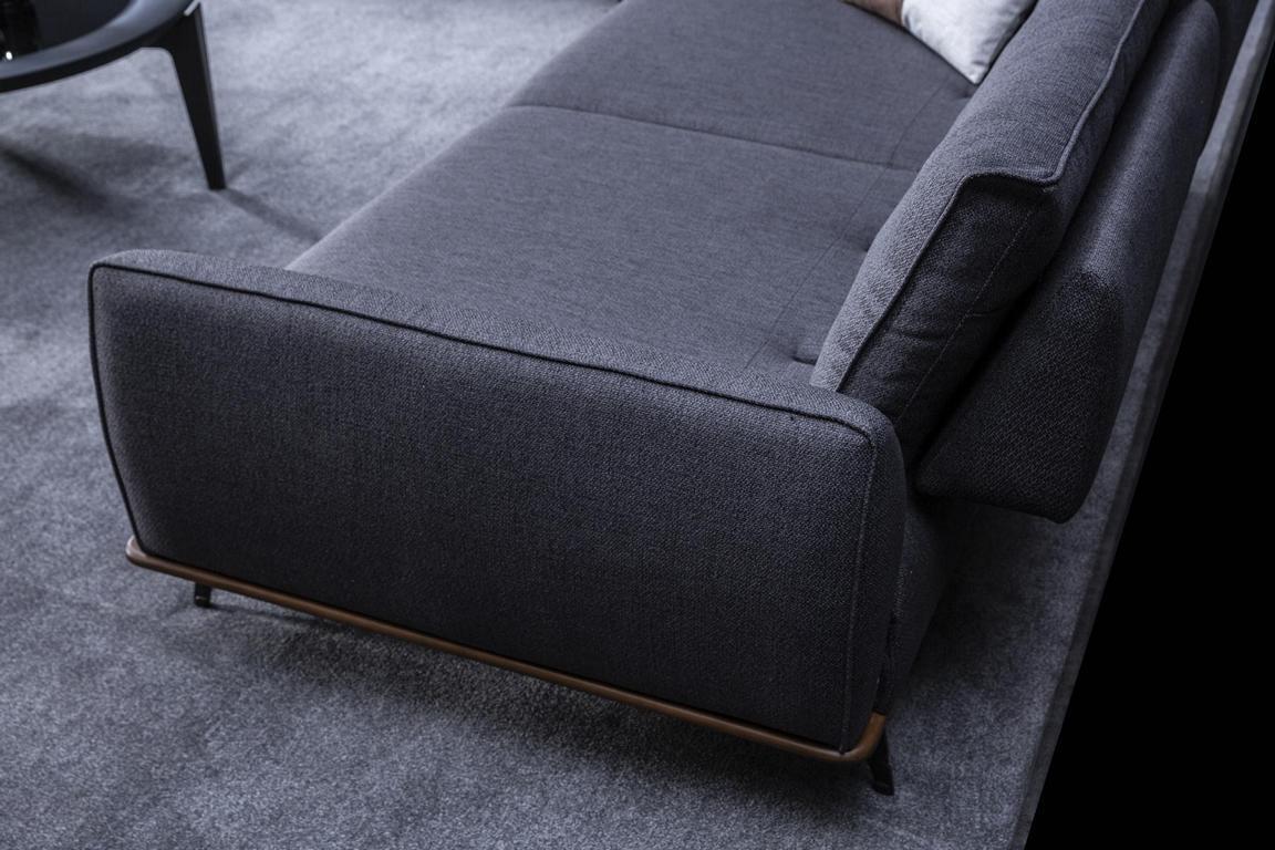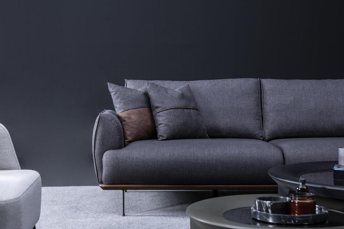 Pelēka sofa, moderns dzīvojamais, trīs vietu, luksusa mēbeles, audumi polsterējums