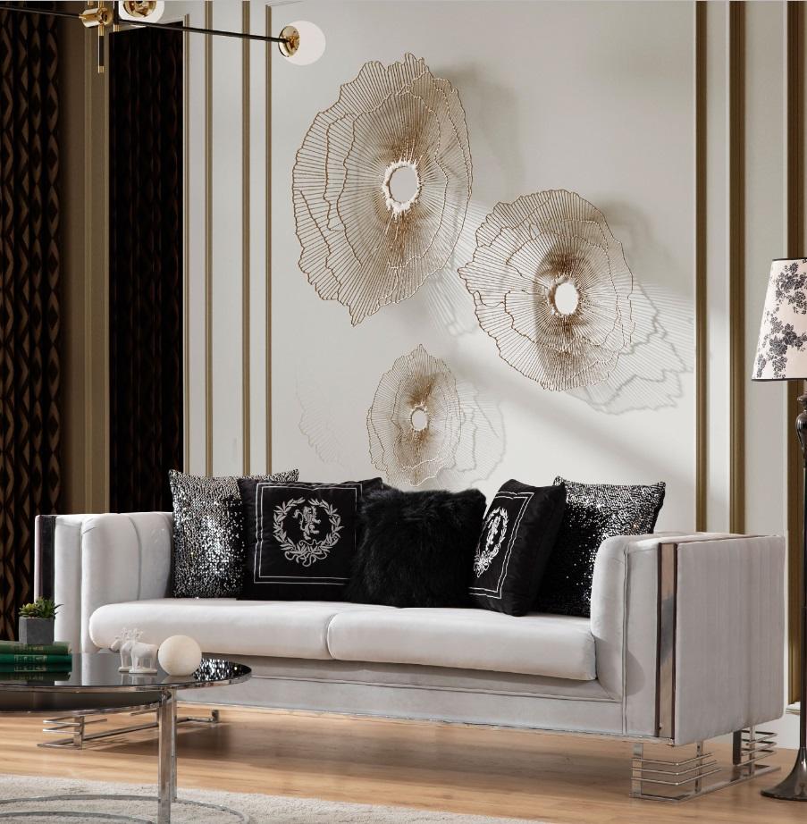 Balts moderns tekstila dīvāns viesistaba 3-vietīgs luksusa mēbeles dīvāns