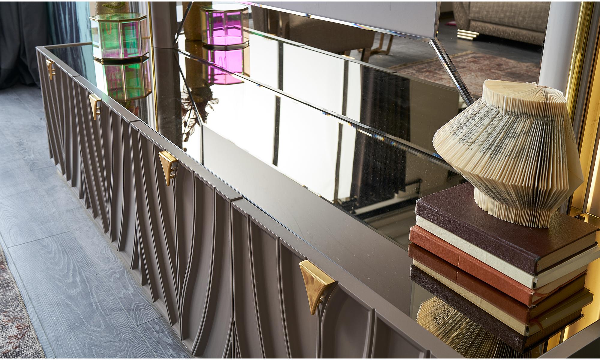 Sniega komplekts ar skapīti un spoguli, ēdamistabas māteņu brūnā koka skapītis