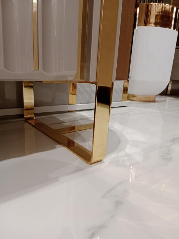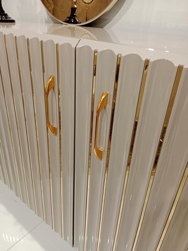 Šī Kumode var iederēties gan dzīvojamā istabā, gan guļamistabā, piešķirot telpai luksusa un modernu izskatu. Ar tās lieliskajiem izmēriem (208 x 45 x 94 cm), jūs ne tikai iegūsiet vērtīgu uzglabāšanas vietu, bet arī radīsiet eleganci savai telpai. Krāsas toni un detaļas koka materiāla virsmā padarīs šo kumodi par ne mazāku kā mājai māksliniecisko gabaliņu.