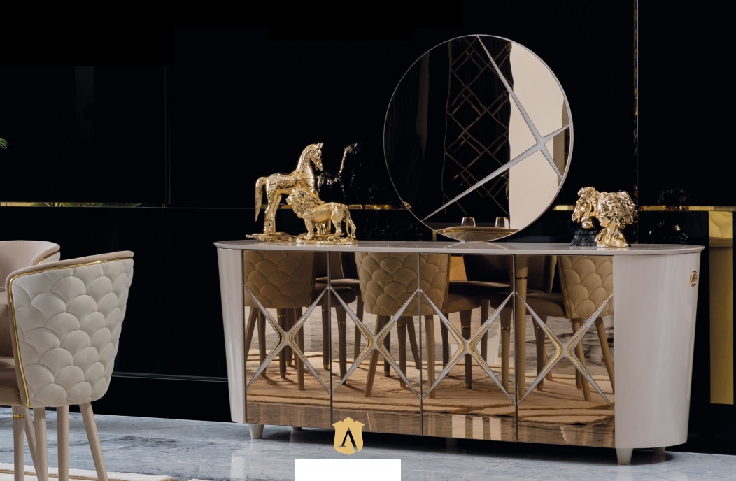 Spogulis Ø 88 cm piešķirs telpai plašuma sajūtu un vizuāli paplašinās interjeru. Konsoles un spoguļa elegante krāsas un dizains dod iespēju mīksti apgaismojot radīt siltu un mājīgu noskaņu. Iekšējais rāmis no īsta koka nodrošina ilgmūžību un stabilitāti. Šis kumodas skapis nav tikai funkcionala mēbele, bet arī stilīgs dekors jūsu mājas interjeram.