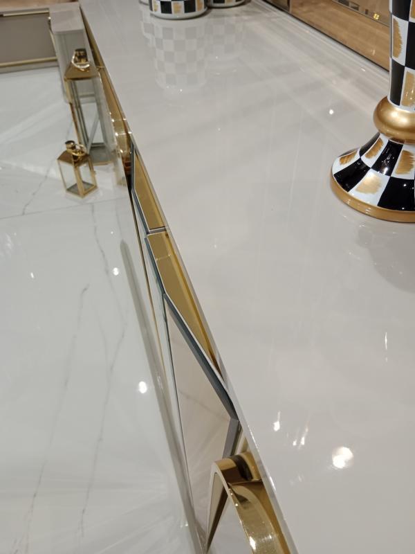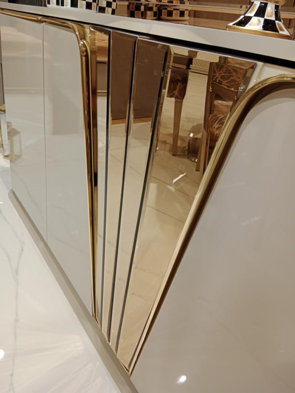 Šis luksusa komodais piedāvā optimālu glabāšanas vietu un papildu spoguļu iespēju. Ar precīziem apmēriem un augsto kvalitāti, tas ir lielisks risinājums gan dzīvojamās istabas, guļamistabas vai halles iekārtošanai. Izturīgais materiāls garantē mēbeļu ilgmūžību un praktiskumu, savukārt tā modernais dizains padarīs jūsu telpu vizuāli pievilcīgu un elegantu. Šis luksusa komodais ir ideāls iekārtas gabals tiem, kas vēlas savā telpā apvienot stilu un funkcionalitāti.