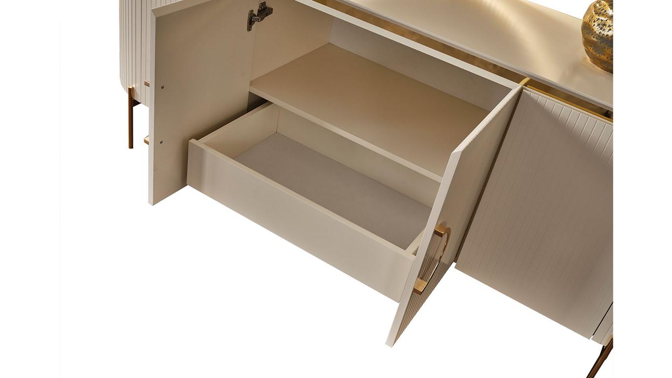 Šis ēdamistabas komplekts ideāli iederēsies dažādās telpu iekārtojuma tematikās, piešķirot telpai siltumu un modernitāti. Skapī var uzglabāt gan nelielas mantas, gan lielākus priekšmetus, padarot telpu par lielisku vietu, kur saimniekot un uzglabāt ikdienas priekšmetus. Tā stabilais konstrukcijas un dizains nodrošina ilglaicīgu izmantošanu, kamēr spogulis vizuāli palielina telpas izjūtu, rada spilgtas un gaisīgas atmosfēras. Izvēlieties šo komplektu, lai radītu eleganci un funkcionalitāti savā mājā.