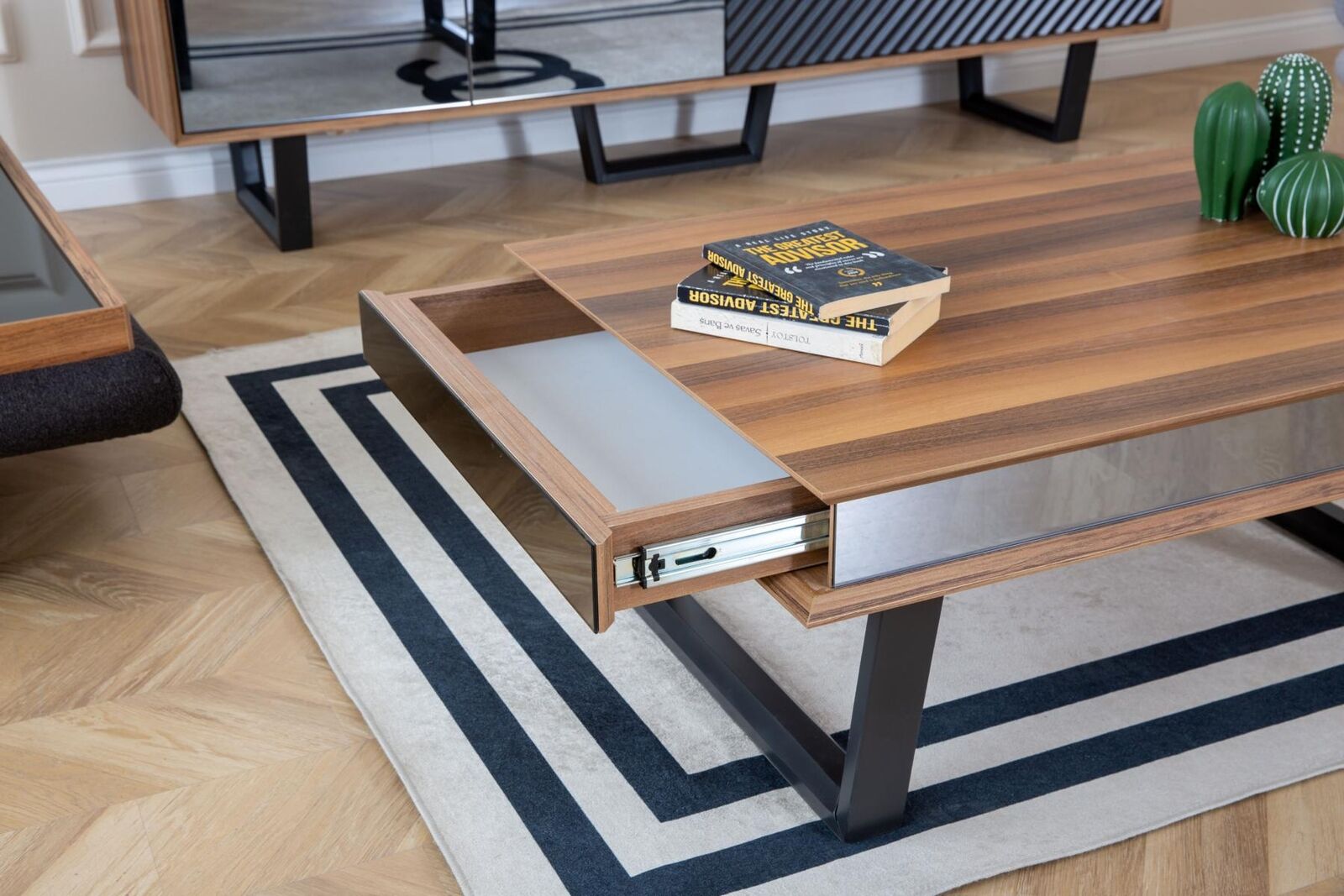 Pateicoties tā daudzpusīgajiem izmēriem un dizainam, šis galds ir lieliska izvēle gan maziem dzīvokļiem, gan arī plašākām telpām, piedāvājot daudzveidīgas iespējas izkārtojumam. Tā augstums un platums apmēram 40 cm un 70 cm attiecīgi, padara to piemērotu gan televizoru novietošanai, gan arī kā galda virsmu saskarsmei ar draugiem un ģimeni. Šis galds ideāli iederēsies gan mūsdienīgā, gan klasiskā interjerā, piešķirot telpai pievilcīgu un funkcionalu elementu, kas kalpos kā gan dekorācija, gan praktisks ikdienas priekšmets.
