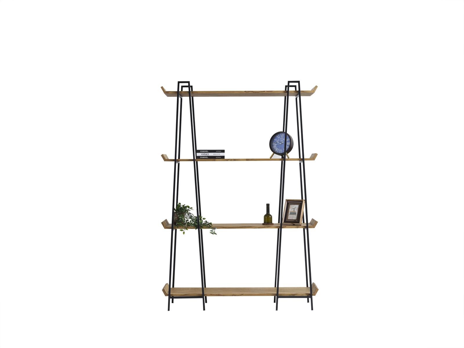 Stilīga un funkcionāla koka grāmatplaukts dzīvojamā istabā ir ideāla izvēle, lai piešķirtu jūsu mājas interjeram stilīgu un modernu piesitienu. Ar izmēriem apmēram 130 x 30 x 190 cm, šis grāmatplaukts ir lielisks veids, kā parādīt savu grāmatu kolekciju un vienlaikus nodrošināt papildus uzglabāšanas vietu. Materiāls - koks - garantē ilgmūžību un izturību, nodrošinot, ka jūsu mīļās grāmatas tiks saglabātas droši un veidoti.