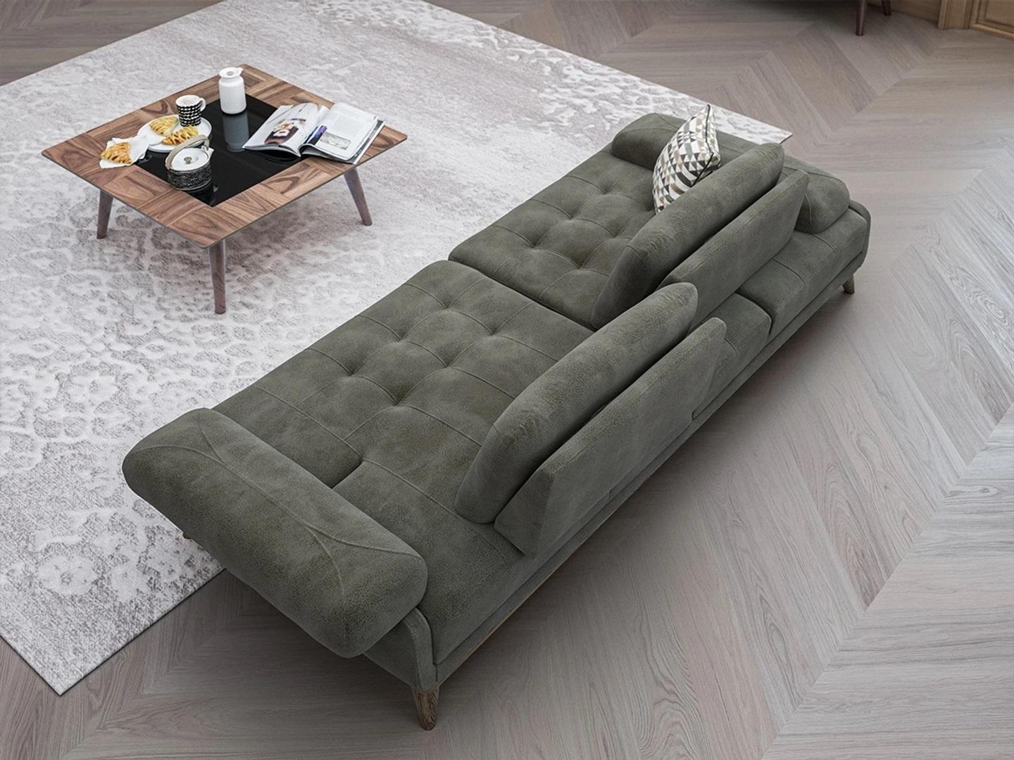 Šis pelēkais divvietīgais dīvāns ir lielisks papildinājums jebkurai luksusa dzīvojamai istabai vai mājai. Ar tā izmēriem apmēram 220 x 105 x 80 cm, šis dīvāns sniedz gan komfortu, gan stilu. Ar sēdēšanas augstumu apmēram 44 cm un sēdēšanas dziļumu apmēram 54 cm, tas nodrošina ērtības un atbalstu. Dīvāns ir izgatavots no koka un tekstila, sniedzot ilgmūžīgu un kvalitatīvu mēbeļu piedāvājumu.
