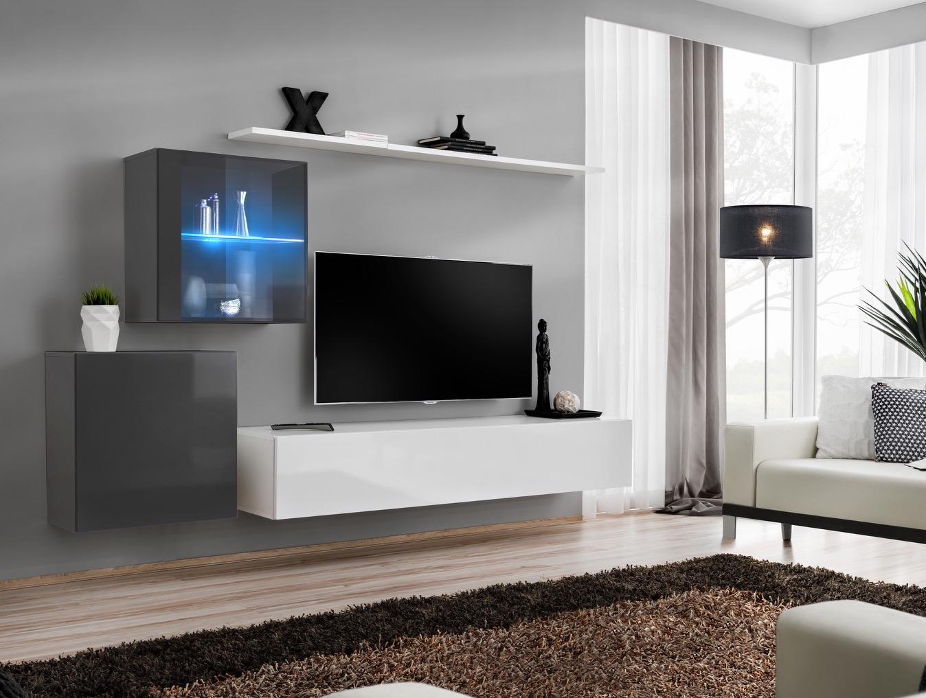 Šis luksusa komplekts ir lielisks risinājums, lai organizētu telpu un nodrošinātu vietu lietām un dekoratīviem priekšmetiem. Ar diviem sienas skapjiem un plauktu, Jūs varēsiet saglabāt lietas kārtībā un ērti rīkoties ar katru priekšmetu. Komplekts piedāvā gan funkcionālas, gan dekoratīvas iespējas, tādējādi būs lielisks papildinājums jebkuram mājas interjeram. Saskaņojiet šo moderno komplektu ar citām mēbelēm un dodiet savai telpai savdabīgu un elegantu pieskaņu.