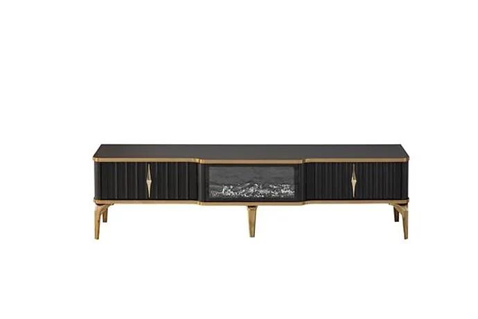 Melnbaltā TV stends - jaunas luksusa mēbeles no MDF metāla dzīvojamā istabā