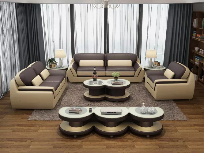 Šis Sofas komplekts 321 ir ideāls papildinājums jūsu mājas iekārtojumam, piedāvājot ne tikai eleganci, bet arī maksimālu komfortu un izturību. Šis komplekts sastāv no 3 dažādiem dīvāniem un kafijas galdiņa, kas ne tikai papildinās jūsu dzīvojamā stūra dizainu, bet arī nodrošinās vietu, kur atpūsties un baudīt brīvo laiku. Materiāls veidots no premium ādas šķiedrām (70% ādas / 30% poliestera), nodrošinot gan stilu, gan ilgmūžību.