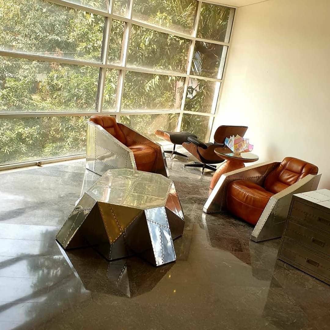 Kluba krēsla aviācijas stila atpūtas zona dizains hroma mākslas deko ādas kokteilis