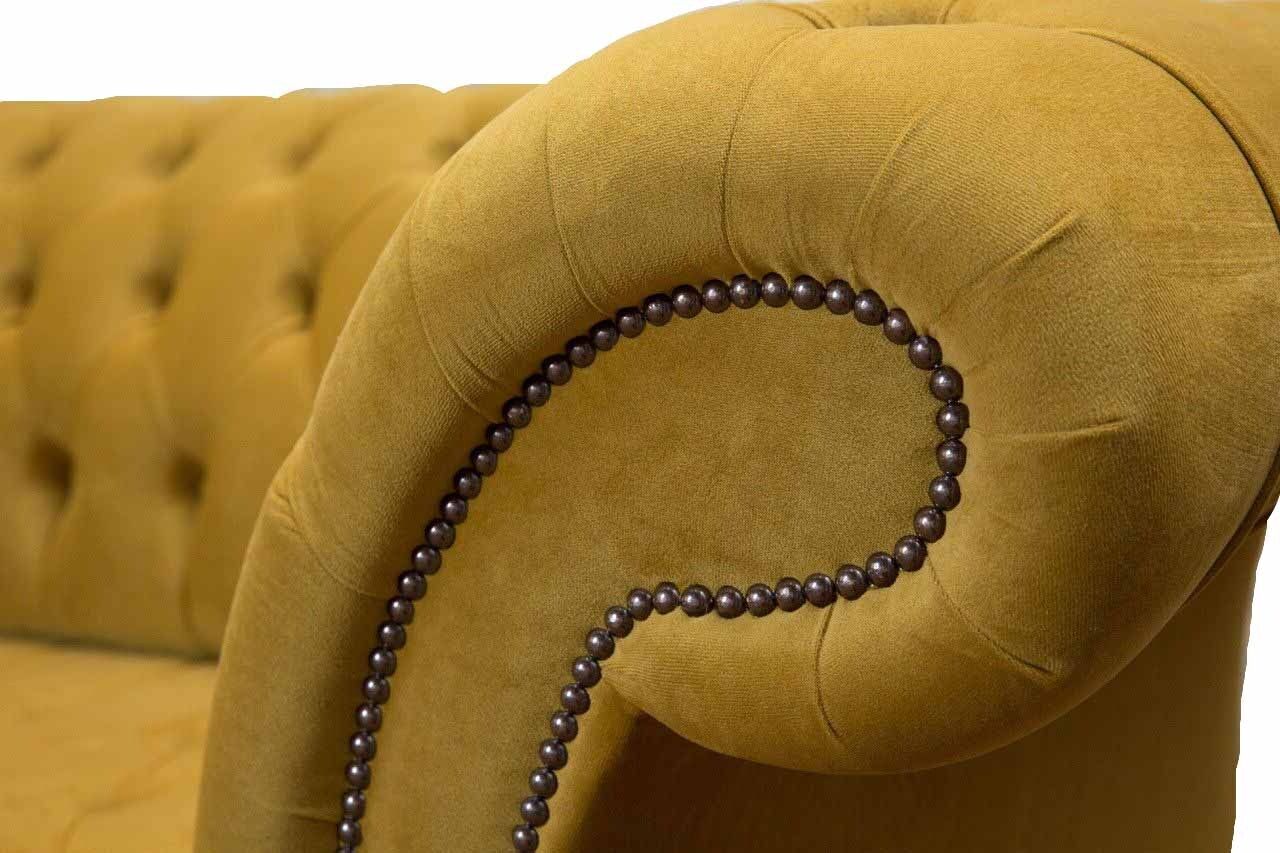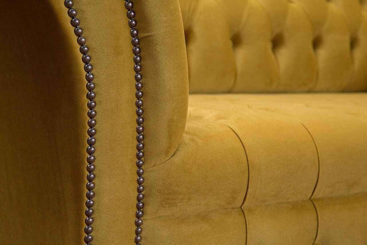 Krēsls Chesterfield Mēbeļu komplekts 2 vienvietīgie krēsli, dīvāns, gultne dzeltenā krāsā, tekstila pārklājums.