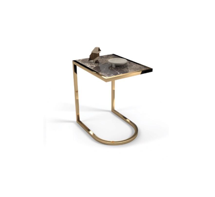 Luksa blakusgalda dizainera dzīvojamā istaba galds no nerūsējošā tērauda ar stikla virsmu