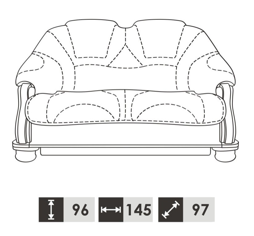 Dīvāns 2-vietīgs sēdeklis Klasiskā dzīvojamā zona Dīvāni Dīvāni Polstermöbel divvietīgs ir ideāla izvēle Jūsu mājas dzīvojamā telpai. Šis elegants dīvāns ar diviem sēdvietām ne tikai piešķirs jūsu interjeram stilīgu izskatu, bet arī nodrošinās ērtu un mājīgu sēdēšanas pieredzi. Izgatavots no īstas Itāļu liellopu ādas un koka, šis dīvāns ir izturīgs un kvalitatīvs mēbeļu gabals. Dīvāna izmēri - garums apmēram 145 cm, augstums 96 cm un dziļums 97 cm, tādējādi ļaujot iekļauties jebkurā dzīvojamā telpā un piešķirot tai mājīgu un siltu noskaņu.