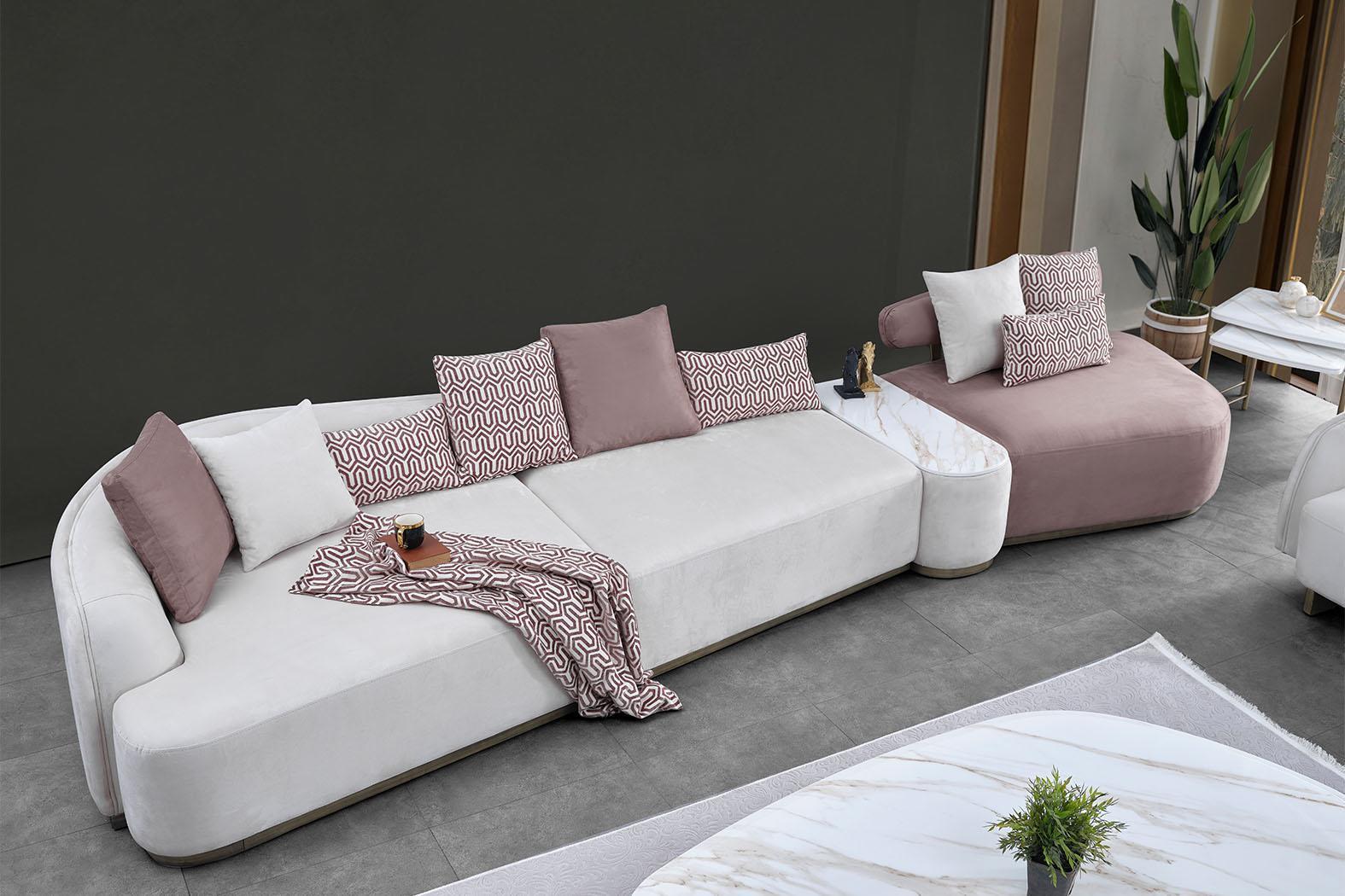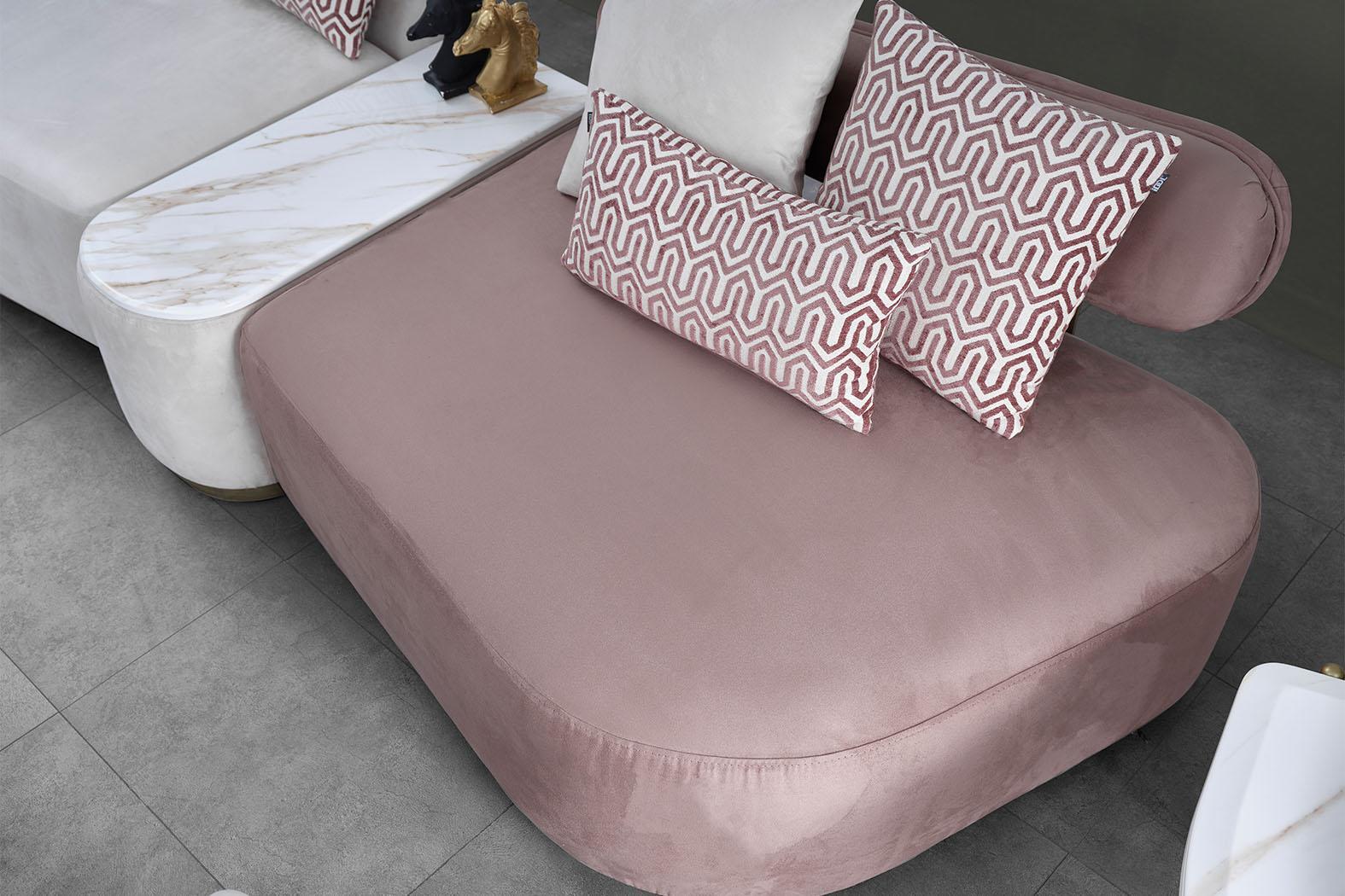 Sofas kompilācija Lielā gulta ar auduma klāju, rožu krāsā, trim vietas, 4 gabalus.
