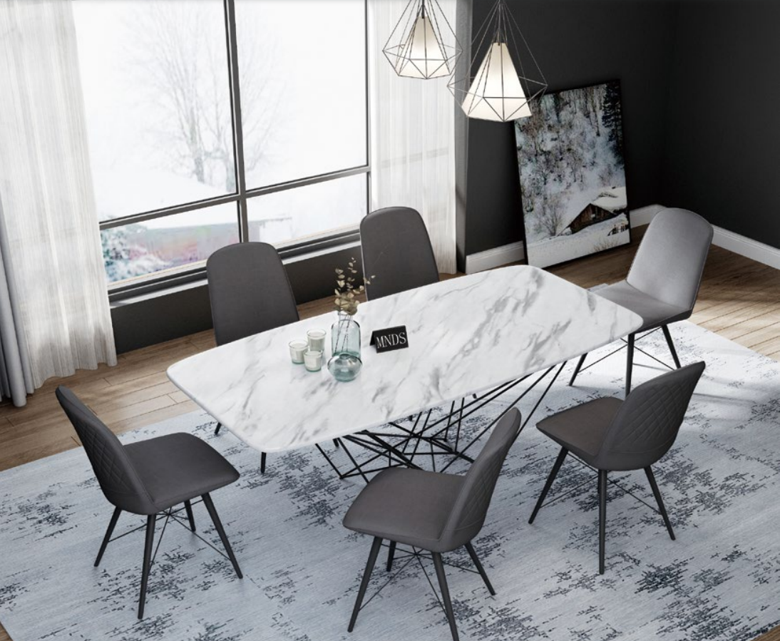 Dizaina ēdamistabas grupa galds + 6 krēsli sēdekļu polsterējums komplekts Galdi ir elegants un funkcionāls mēbeļu komplekts, kas būs ideāla izvēle jūsu ēdamistabai. Šis komplekts ietver lielu ēdamgaldu un 6 krēslus ar komfortablu polsterējumu, nodrošinot gan stilu, gan ērtību. Galds ir aptuveni 160 cm garš, 80 cm augsts un 76 cm dziļš, savukārt katrs krēsls ir aptuveni 48 cm garš, 84 cm augsts un 57 cm dziļš, ar sēdvietas augstumu un dziļumu, kas ļauj ērti sēdēt pie galda.