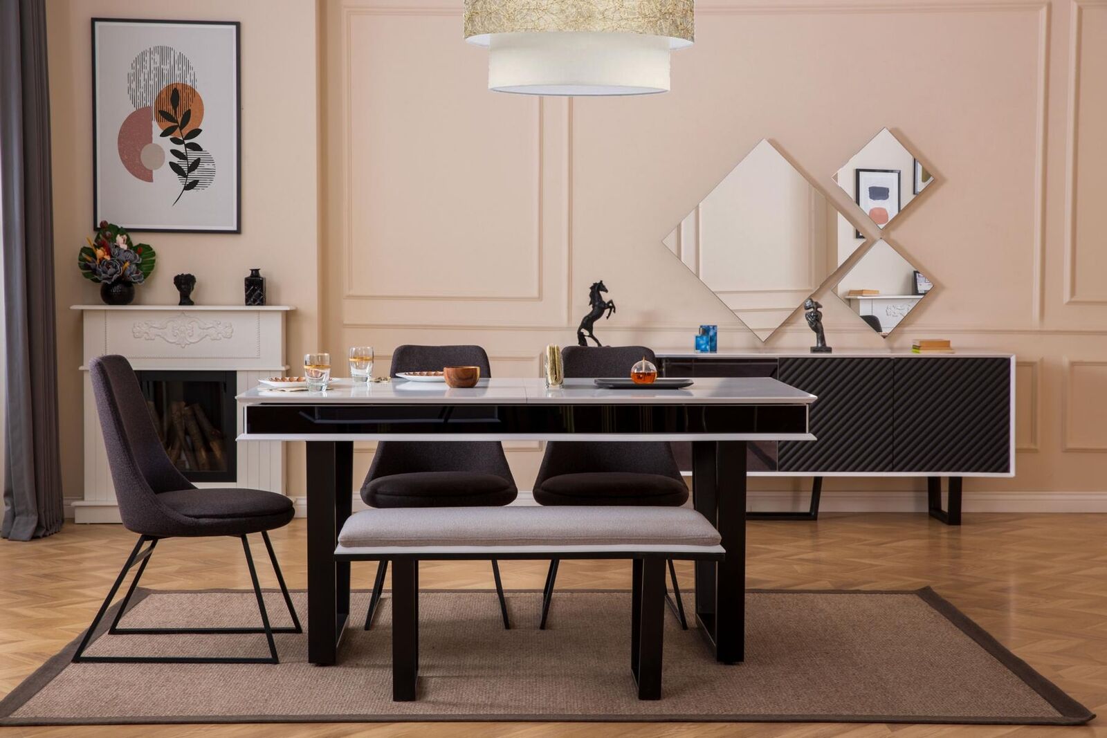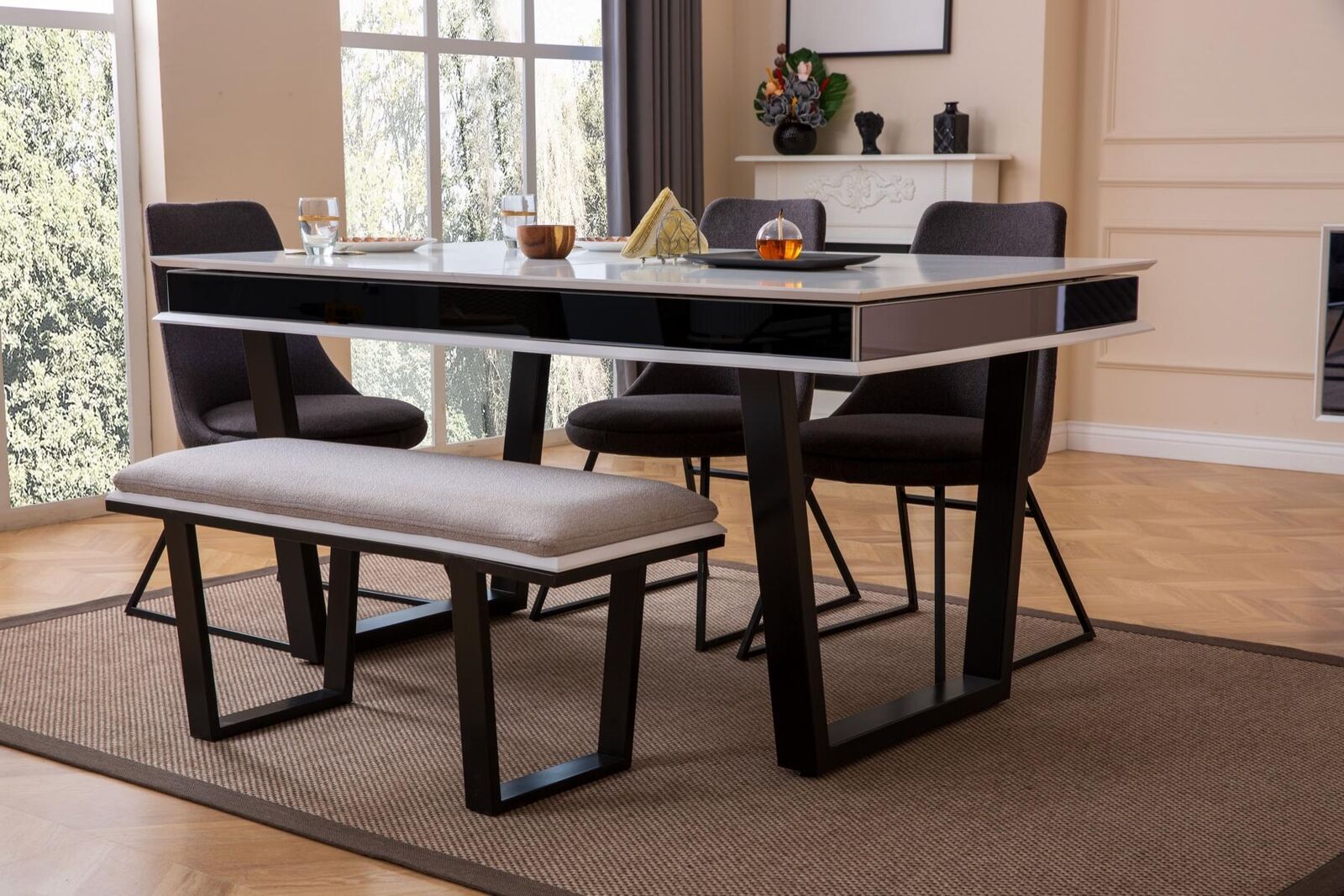 Šis dizainera ēdamistabas komplekts ir ideāls gan mājām, gan restorāniem vai citām komerciālām telpām, kur svarīga ir gan stilīgā, gan funkcionālā iekārtojuma kombinācija. Ar tās modernajiem izmēriem un dizainu, šī komplekta mēbeles būs gan praktiskas, gan vizuāli pievilcīgas. Krāsas var pielāgot pēc individuālajām vēlmēm, nodrošinot, ka komplekts ideāli iekļausies jebkurā interjerā, un piedāvājot savādāku un svaigāku skatījumu telpai.