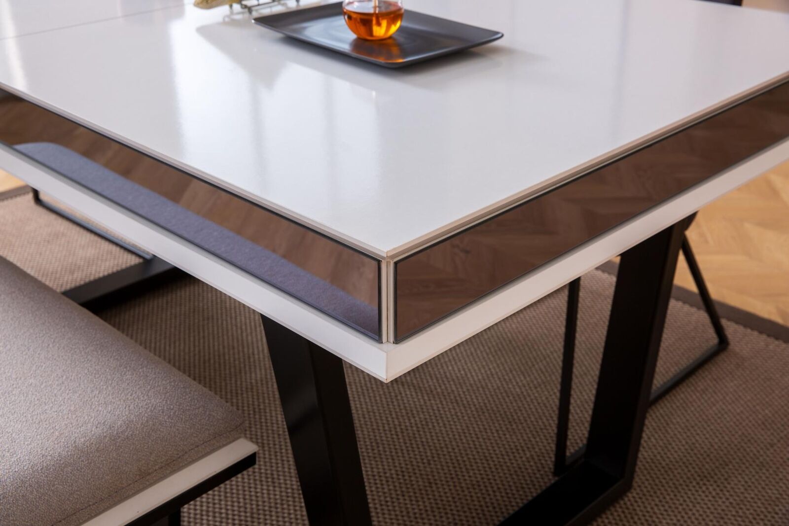 Šis Dizainera ēdamistabas komplekts 10 gab. ir izsmalcinātais veids, kā radīt stilīgu un mūsdienīgu ēdamistabu. Komplektā ietilpst ēdamgalds ar izmēriem apmēram 160 x 90 x 80 cm, 4 krēsli ar izmēriem apmēram 50 x 60 x 90 cm, solis apmēram 140 x 45 x 45 cm, bufete ar izmēriem apmēram 210 x 50 x 80 cm un 3 spoguļi apmēram 70 x 70 x 70 cm. Šīs luksusa mēbeles ir izgatavotas no koka, tekstila, nerūsējošā tērauda un stikla, nodrošinot gan izturību, gan eleganci telpai.