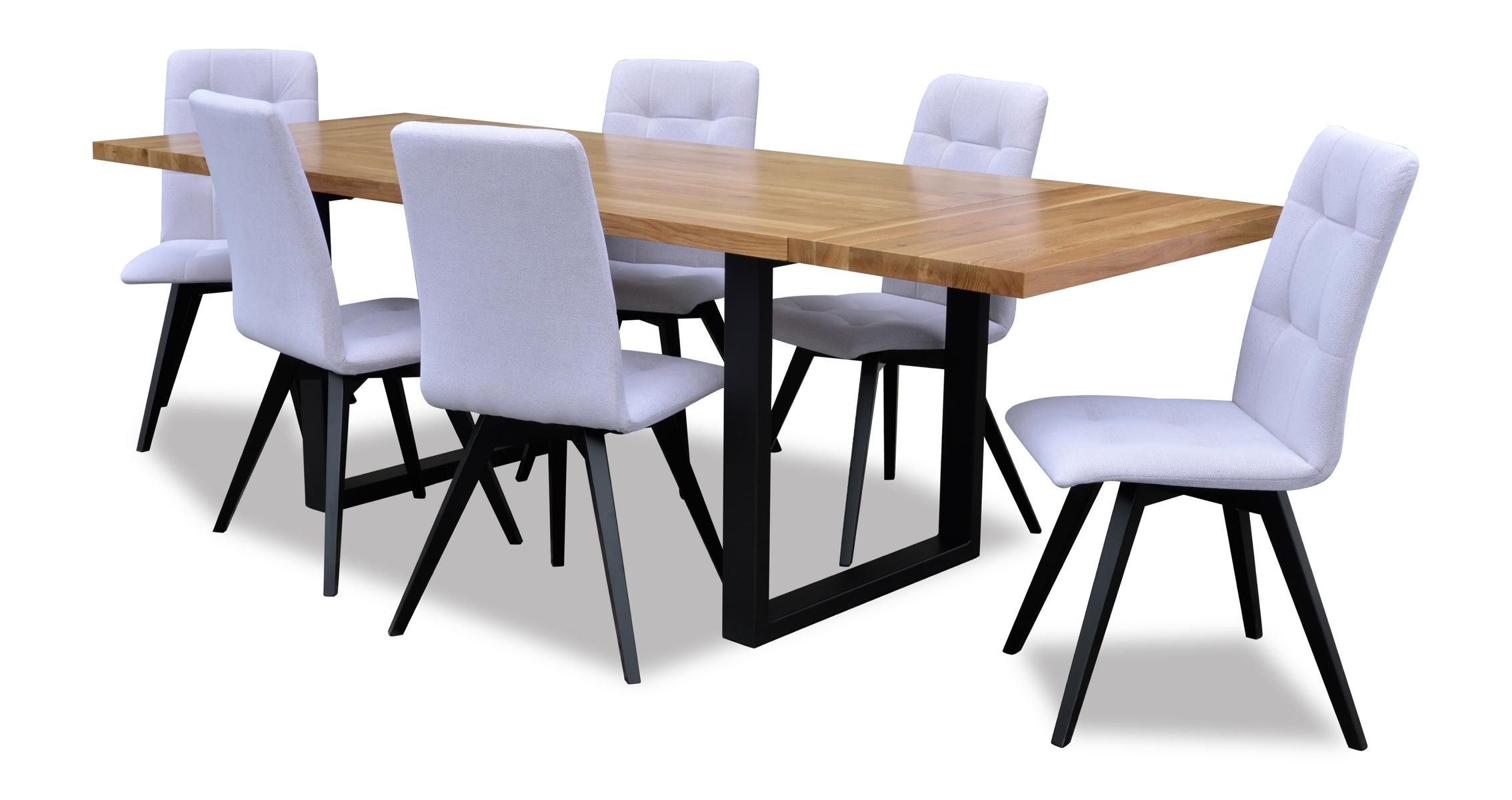 Šis pilnīgais komplekts ēdamistabas mēbeļu sektorā ir ideāla iegāde tiem, kas vēlas savu ēdamistabu pārveidot par stilīgu un funkcionālu telpu. Ēdamgalds ar 6 krēsliem ir augstas kvalitātes un moderns dizains, kas nodrošina gan komfortu, gan eleganci jebkurā telpā. Galda S7 izmēri sākot no apmēram 90 x 160 cm līdz izvilkamajiem 90 x 260 cm (2 x 50 cm) atbilst dažādu vajadzību pilnīgam apmierinājumam. Krēsli K33, ar saviem augstumiem, platumiem un ērtu sēdēšanas augstumu, nodrošina gan ērtību, gan stilu, lai jūs un jūsu viesi varētu baudīt maltītes kopā.