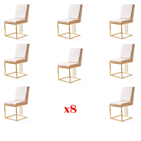 Dizains 8x krēsli grupu komplekts ar polsteri uz jaunu ēdamistabas krēslu garnitūru ir ne tikai funkcionāls, bet arī elegants produkts, kas papildinās jebkuru ēdamistabu vai virtuvi. Šis komplekts ietver 8 krēslus ar polsteri, kas sniegs ērtību un komfortu jūsu viesiem vai ģimenei ēšanas laikā. Izgatavoti no izturīga nerūsējoša tērauda, krēsli ir dizainēti, lai ilgi kalpotu un saglabātu savu stilu.