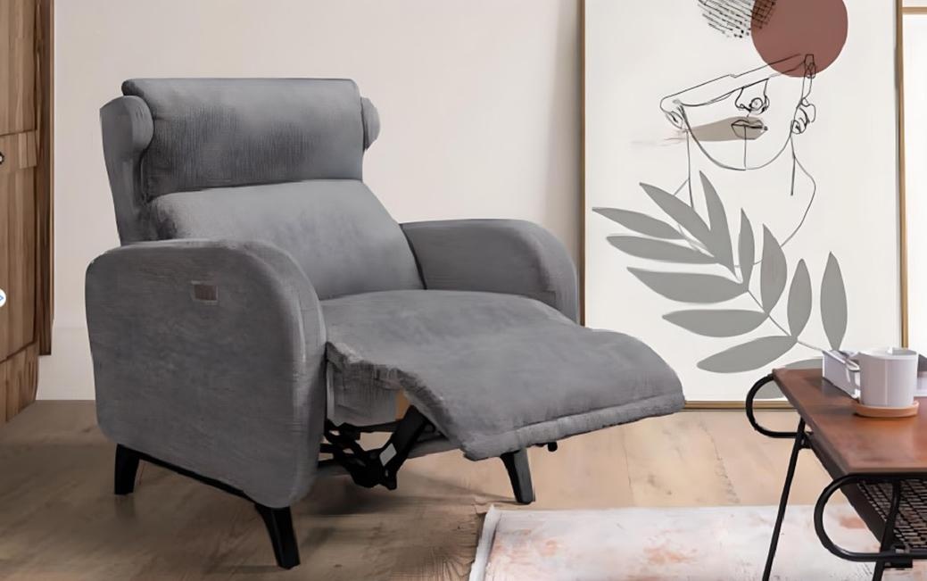 Pelēks atpūtas krēsls ar luksusa kāju balstu viesistabai | xlmebeles.lv