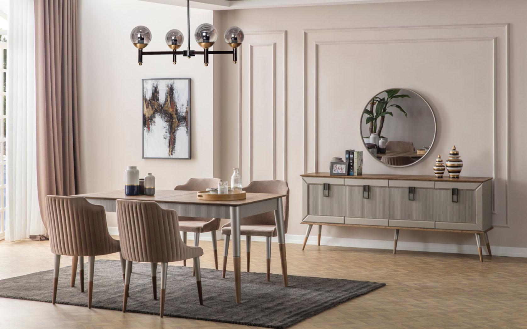 Ēdamistabas mēbeles, brūns ēdamgalds, ēdamistabas spogulis