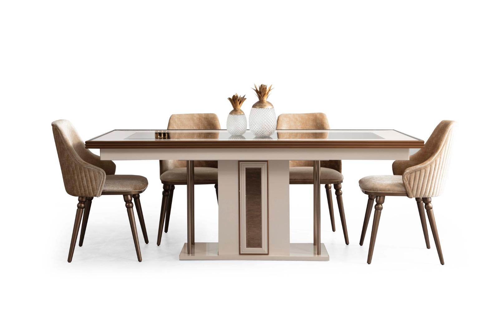 Luksusa krēsls, moderni krēsli, galds, polsteris, metāls, koks, audums, jauns, bēšs
