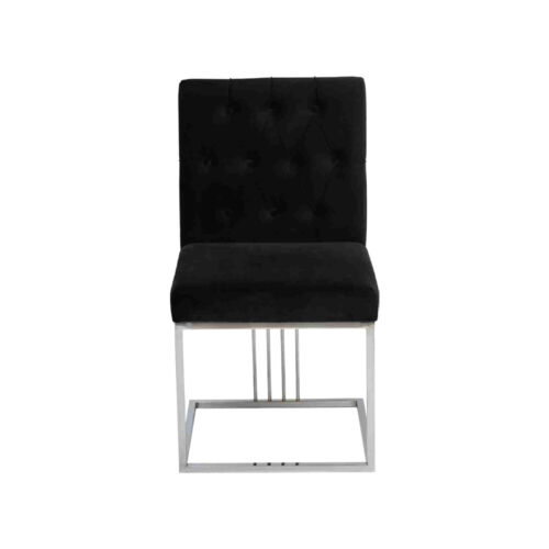 Melns krēsls dizainera ēdamistabas mēbelēs ēdamstāvēs no nerūsējošā tērauda ir elegants un moderns mēbeļu gabals, kas papildinās jebkuru mājas interjeru. Ar izmēriem apmēram 62 x 53 x 93 cm, šis krēsls ir ideāls gan ēdamistabai, gan virtuvei. Tā kvalitatīvās būves materiālu kombinācija no koka, metāla un auduma nodrošina gan izturību, gan stilu.