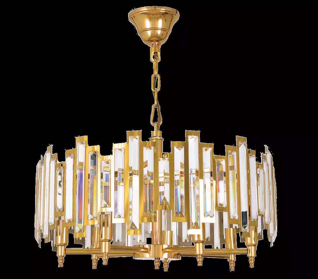Gaisma sega Luksusa kronšlejers kristāls lampa Kakla lampa Zelta lukturi ir elegants un stilīgs interjera elements, kas nodrošina gan gaismu, gan estētisku pievienoto vērtību jebkurā telpā. Šis dizainlampas gabals piešķirs jūsu mājai vai birojam greznu un mūsdienīgu izskatu, vienlaicīgi radot mīkstu, relaksējošu atmosfēru. Ar metāla pamatni un kristālu tas ir gan izturīgs, gan izsmalcināts papildinājums jebkurai iekštelpai.