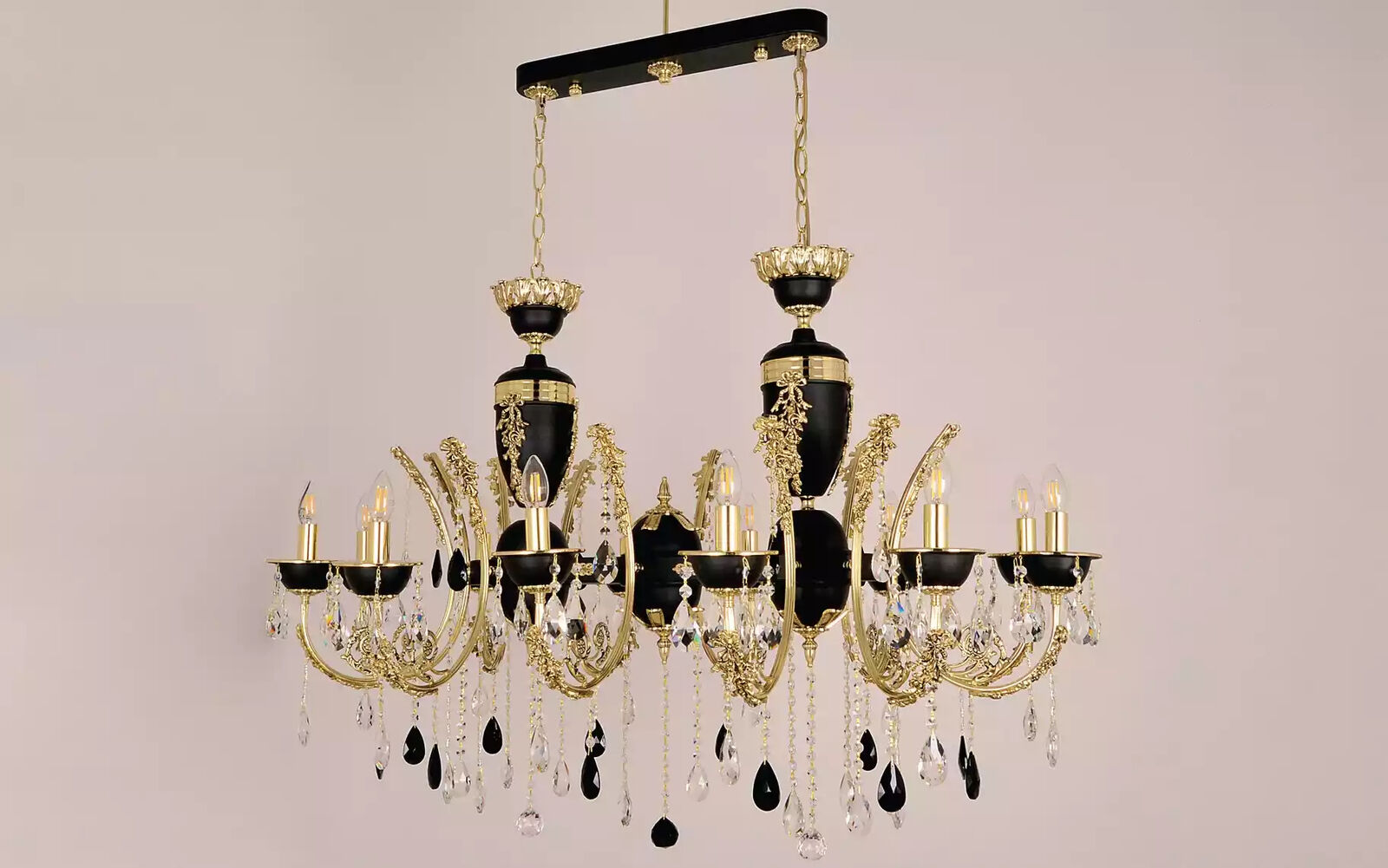 Gaismas lustra luksusa kronšteina griestu lampa kristāla melna lampa ir elegantūra un moderna gaisma izkārtojumu izgaismojoša lampas izvēle. Šī lustra izceļas ar tās augsto kvalitāti un stilīgo dizainu, kas piešķirs jūsu telpai greznu un mūsdienīgu atmosfēru. Šī griestu lampa ir aprīkota ar12 kvalitatīvām lampām, kas nodrošina spilgtu un vienmērīgu apgaismojumu. Lampa ir izgatavota no izturīga materiāla – misiņa un kristāla, kas dod tai gan eleganci, gan izturību.