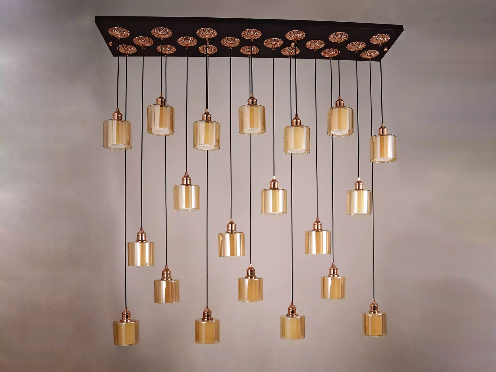 Galdi lampas vainags griestu lampa moderns zelts ir elegantas un modernas dizaina griestu lampa, kas spēj padarīt jebkuru telpu par gaismas pilnu un stilīgu vietu. Šī lampa ir aprīkota ar 20 lampām un izgatavota no izturīga metāla un stilīga stikla, nodrošinot ilgmūžīgu un kvalitatīvu lietošanu. Ar tās izmēriem Ø 40-160 cm x 120 cm un izsmalcināto zelta nokrāsu, šis lampas vainags ir lielisks iekārotājs jebkurā mūsdienu interjerā. Gaismas avoti nav iekļauti, tādēļ Jums ir jāiegādājas atbilstošas lampas, lai radītu mājīgu un mirdzošu atmosfēru.