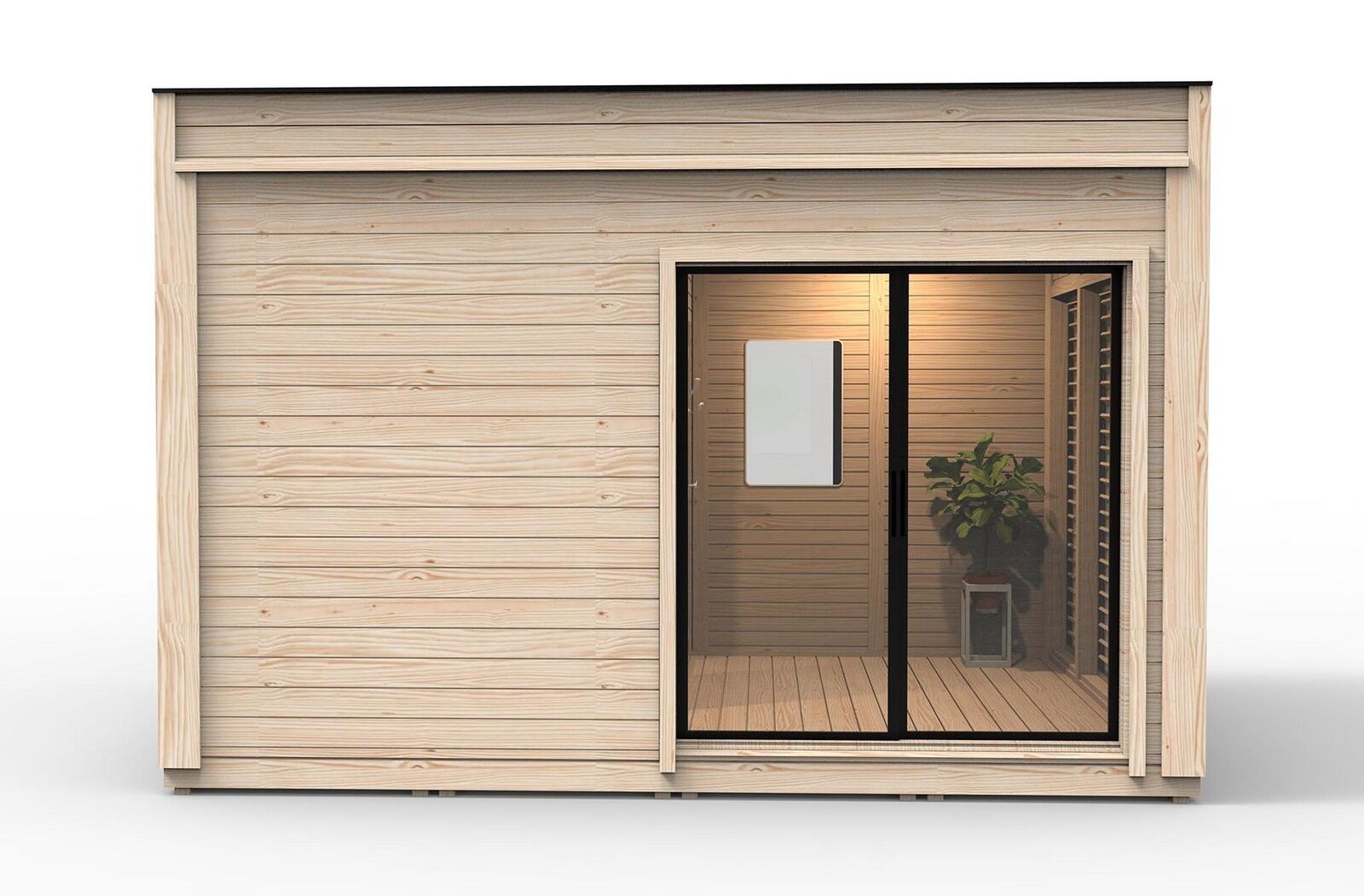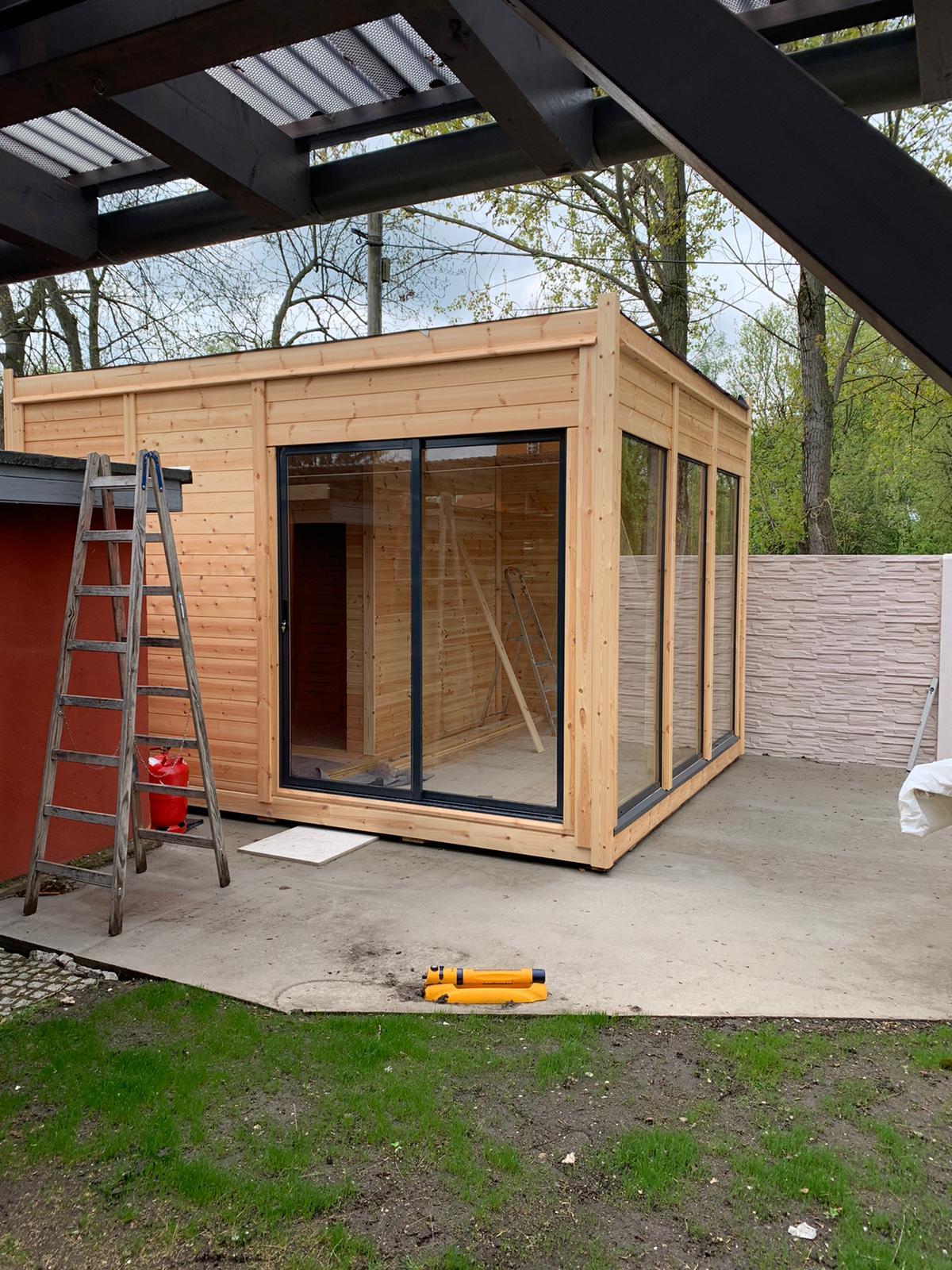 Ar 2 m alumīnija slīdošajām durvīm, 9 izolētām pilnām paneļu sienām un 3 vitrīnu logiem ar koka žalūzijām, šī pirts piedāvā jums ne tikai funkcionalitāti, bet arī stilu un dizainu. Izmantojiet šo unikālo pirti, lai relaksētos pēc garas darba dienas vai izbaudītu kvalitatīvu laiku ar draugiem un ģimeni. Ar ārējiem izmēriem 4.64 x 3.54 x 3.18 m, šī pirts ir ideāla gan lauku mājai, gan dārzam, nodrošinot jums patīkamu pirti un atpūtu jebkurā brīdī.