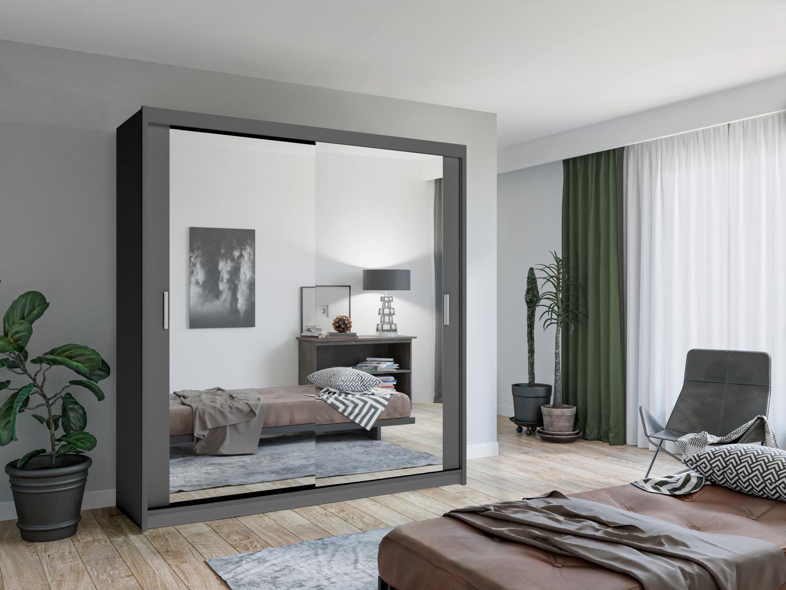 Šis skapis ne tikai nodrošina pietiekami daudz vietas jūsu apģērba glabāšanai, bet arī piešķir jūsu telpai eleganci un stilu. Ar krāsu, kas atbilst attēlā redzamajai un moderno dizainu, šis skapis ir lielisks papildinājums jebkuram mājas interjeram. Izmantojiet to savā guļamistabā, dzīvojamā istabā vai pat birojā, lai organizētu savu garderobi vai glabātu citus priekšmetus, saglabājot tos kārtīgu un pieejamu.