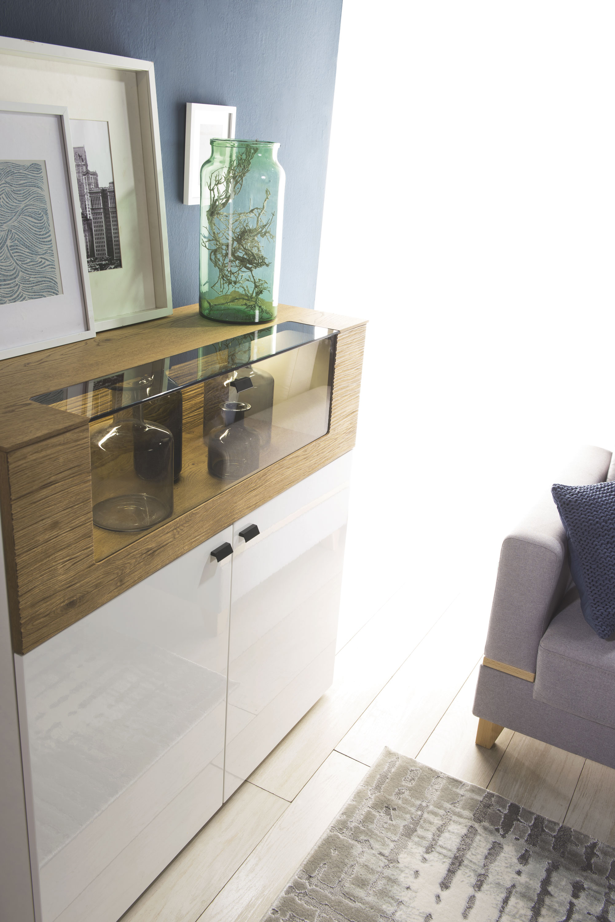 Aizmugure & plaukti: MDF (vidēji blīva kokskaidu plāksne), finierēta & lakota