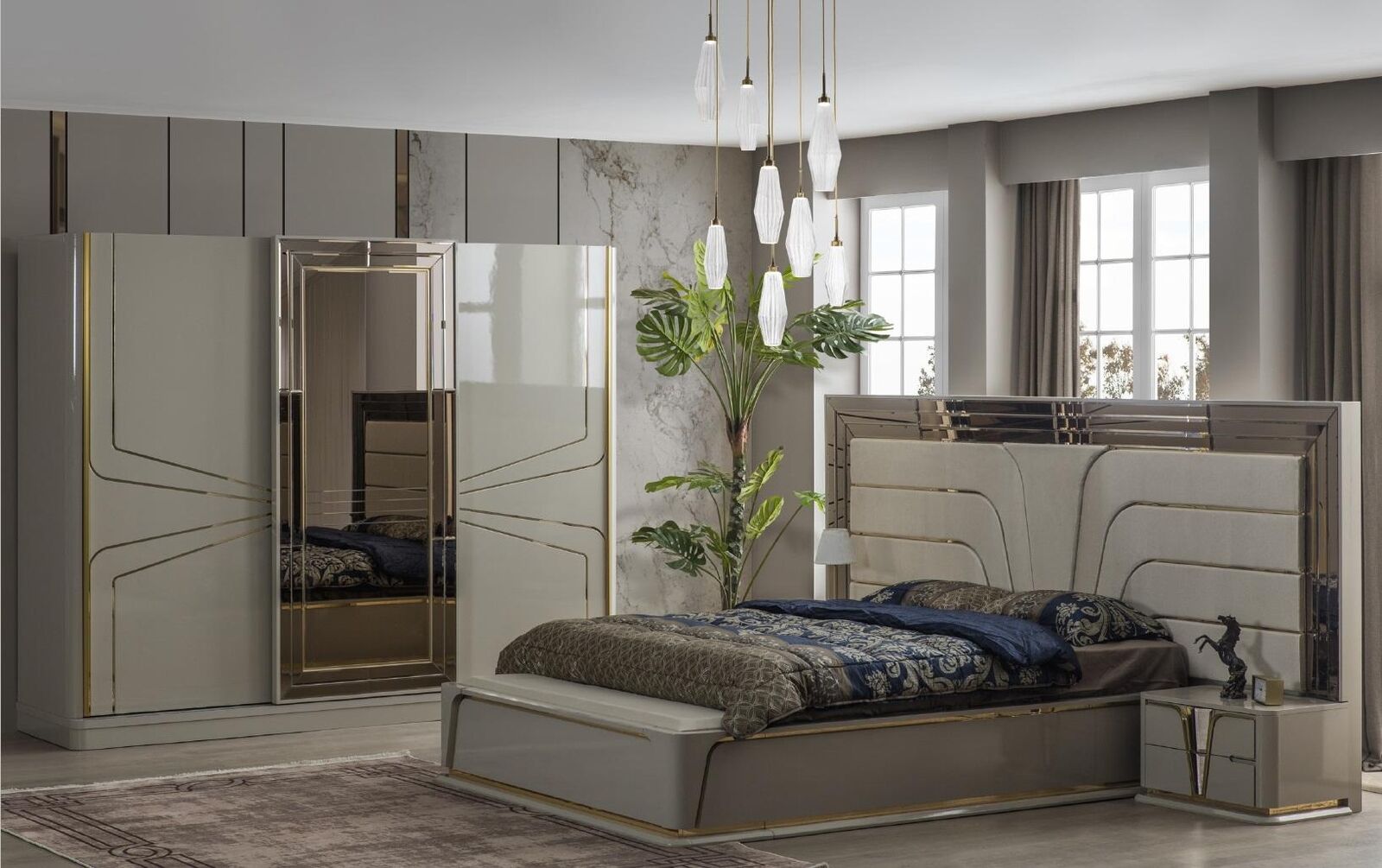 Gultas istaba komplekts divguļama gulta luksusa gulta Moderna beige komplekts 3 gabali Jauns