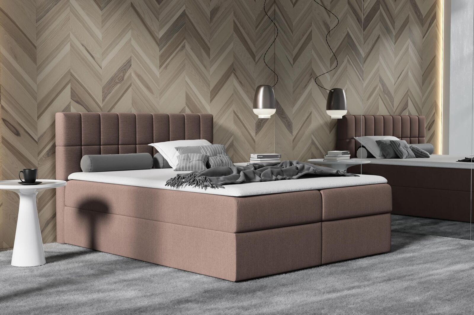 Gulta Rozā audums Jumtaaugstums ar tekstila dizainu ir moderna divu personu viesnīcas gulta ar gultas kasti, kas nodrošina gan stilīgu izskatu, gan praktisku lietošanu. Ar gultas laukuma izmēriem apmēram 200 x 200 cm un gultas augstumu apmēram 103 cm, šī gulta ir lieliska izvēle mūsdienīgai un elegantaistilu viesnīcas istabai. Gultas komplektā ietilpst divas gultas kastes, galvenā matrace ar kabatas atsperes augstas elastības putu T30 un 5 cm augsts topper no augstas elastības putām, kas nodrošina ērtu un mīkstu guļamo virsmu.