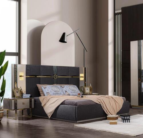 Divgultas Komplektēšana Guļamistabas Mēbeles Gulta Nakts Skapji Pelēkā Krāsā 3 gab.