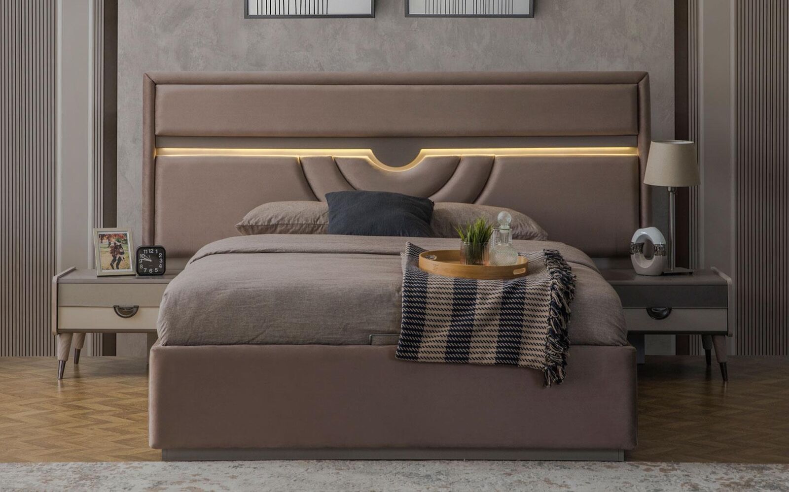 Otro veselu nakti uzņēmumu atbalstīs gultas kaste, kas nodrošina papildus uzglabāšanas telpu gultas veļai vai citiem priekšmetiem. Ar tām varēsiet pilnībā izmantot guļamistabas telpu un saglabāt tīrības un kārtības sajūtu. Naktsgaldiņi ar platuma aptuveni 42 cm un augstuma aptuveni 45 cm ir ērti un praktiski, nodrošinot vietas gan lampiņai, grāmatai, vai mobilajam telefonam tuvu gulēšanas vietai. Kopumā šis gultas komplekts būs lielisks papildinājums jebkuram mūsdienīgam dzīvoklim vai mājai, piešķirot telpai eleganci un funkcionalitāti.