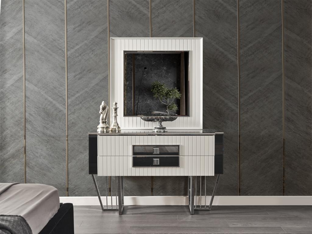 Šīs mēbeles ir izgatavotas no augstas kvalitātes koka, tekstila un metāla, nodrošinot gan izturību, gan stilu jūsu guļamistabā. Ar saviem modernajiem izmēriem un elegantajiem akcentiem, šis komplekts būs gan funkcionala, gan vizuāli pievilcīga iekārta jūsu guļamistabā. Izkārtojiet savu guļamo istabu ar šī komplekta palīdzību un radīsiet mājīgu un stilīgu vidi savai atpūtai un relaksācijai. Izbaudiet komfortu un stilu ar šīm luksusa guļamistabas mēbelēm!