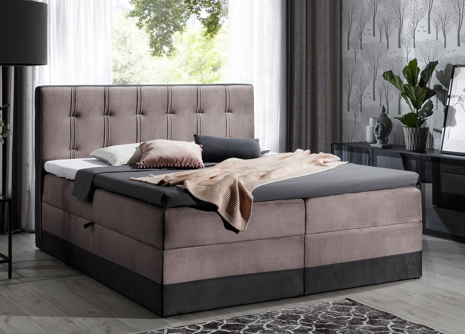Šī gulta ir pieejama ar dažādiem gulēšanas laukuma izmēriem, kas padara to ideālu ne tikai privātām mājām, bet arī viesnīcām vai iznomātiem dzīvokļiem. Jums ir brīva izvēle krāsas un materiāla ziņā, sākot no grupas I auduma vai Premium mākslīgās ādas līdz grupai II ar papildu maksu. Piegādes saturs: gulta. Ieguldiet augstas kvalitātes un stilīgā guļamistabas mēbelēs, izvēloties šo moderno un ērtu Boxspring gultu, kas būs ne tikai lielisks dizaina elements, bet arī ļoti komfortabls gulēšanai katru nakti!