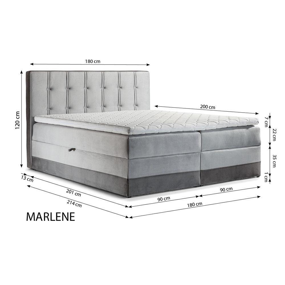Kvalitatīva un ērta Boxspring gulta Mēbeles Dubultā viesnīca 180x200 ir īpaši izstrādāta, lai nodrošinātu labāko gulēšanas pieredzi. Izmēri: Gulēšanas laukuma platums apm. 180 cm, garums apm. 214 cm un augstums apm. 120 cm. Šī gulta nāk ar 2 x gultas kasti, galveno matraci no kabatveida atsperes augsti elastīga putu materiāla T30 un augstu elastīga putu materiāla topperi, kas padara to īpaši ērtu. Tā ir arī automatizēta uz atsperēm, kas atvieglo gultas kastes atvēršanu, nodrošinot praktiskumu ikdienas lietošanā.