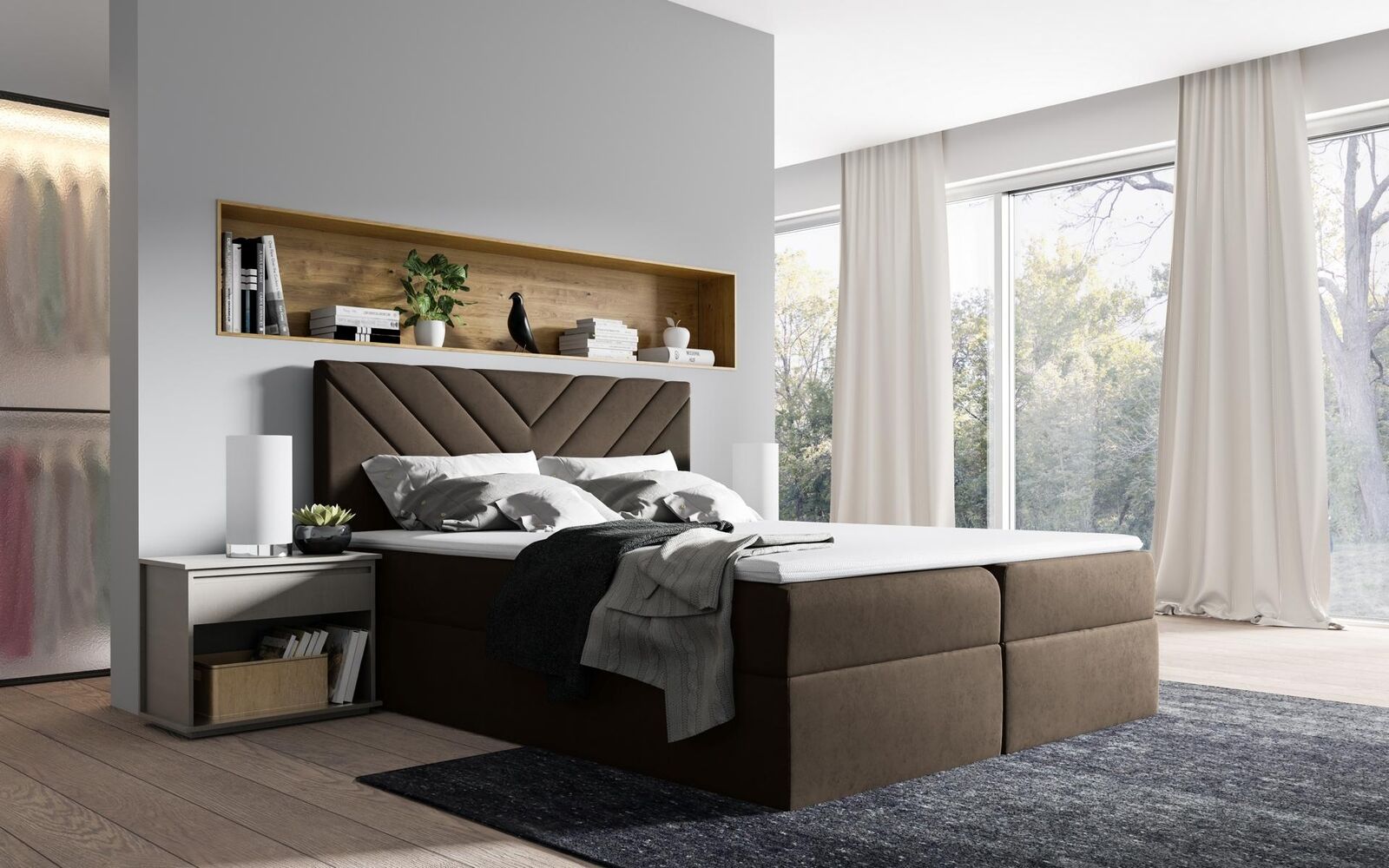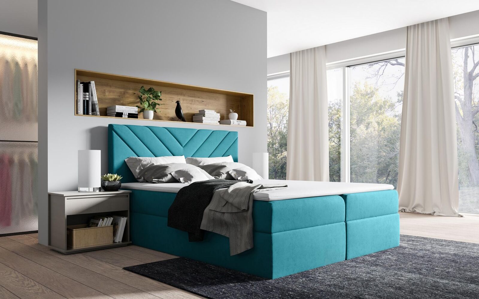 Gulta Gultas kaste Boxspring gulta Dubulta viesnīca Moderna Gultas kaste Gultiņas Guļamistaba ir augstas kvalitātes un moderns guļamistabas mēbeļu elements, kas nodrošina gan komfortu, gan stilu. Ar gultas platību apmēram 200 x 200 cm un augstumu apmēram 103 cm, šī gulta ir izsmalcināts papildinājums jebkurai guļamistabai. Opcijas no 120 cm līdz 180 cm platām gultas platībām ļauj pielāgot gultas izmēru pēc vajadzībām. Lai nodrošinātu maksimālu komfortu, gultā ir 2x gultas kaste, Bonell atspere matracis un augsti elastīgs putu materiāls. Automātika atvieglo gultas kastes atvēršanu, nodrošinot ērtu un praktisku izmantošanu.