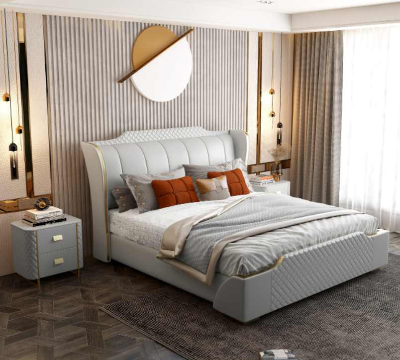 Gulta matracis dizains luksusa divguļamā gulta viesnīcas guļamistaba mākslīgā āda