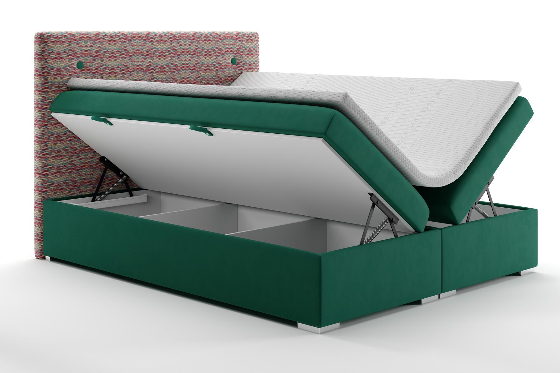 Boxspring gulta viesnīcai Dubultā komplektā ietilpst matracis, matrača virsma, gultas funkcija un kaste.