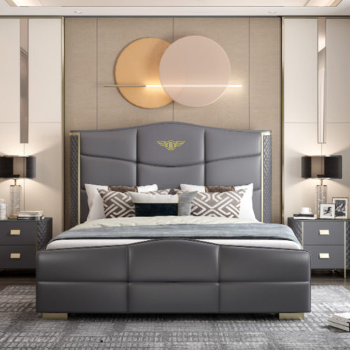 Divvietīga gulta, ādas gulta, mēbeles, luksusa guļamistabas mēbeles