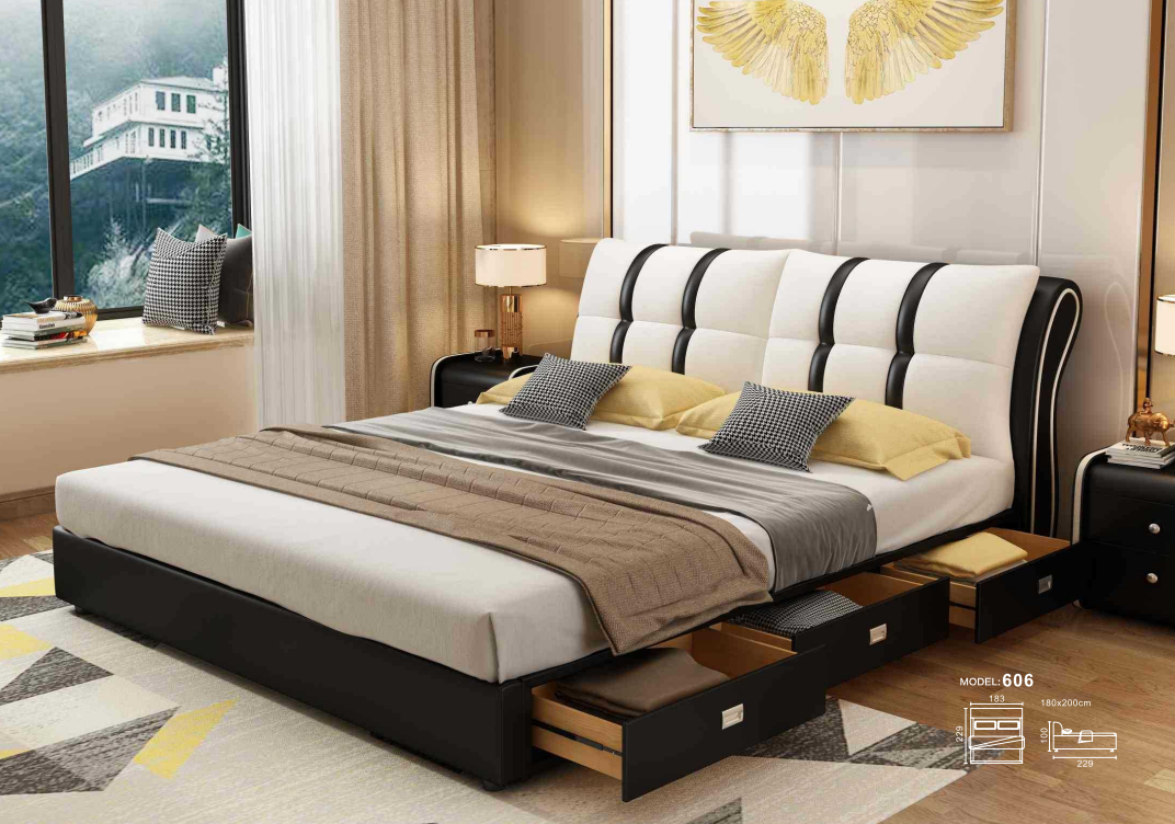 Šī Dizainera gultas guļamistaba ir iekārtota ar augstas kvalitātes tekstila audumu no Itālijas, kas nodrošina ne tikai komfortablu guļamvietu, bet arī piešķir telpai luksusa viesnīcas noskaņu. Matraču virsma ar izmēriem apmēram 180cm x 200cm nodrošina plašu guļamvietu, savukārt gultas izmēri apmēram 229cm x 183cm x 100cm sniedz lielisku ergonomiku un estētiku. Lietojot premium tekstila audumu, šī gulta būs gan moderns un stilīgs elements jūsu guļamistabā, gan arī ērts un atpūtas pilnībā vērts.