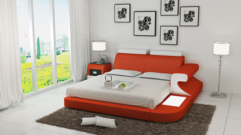 Gulta + apgaismojums, ādas gulta, mēbeles guļamistabai
