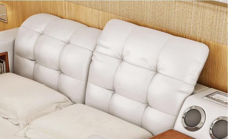 Divu kāpju luksusa ādas gulta + USB polsteru gultas, moderns viesnīcas multifunkcionāls.