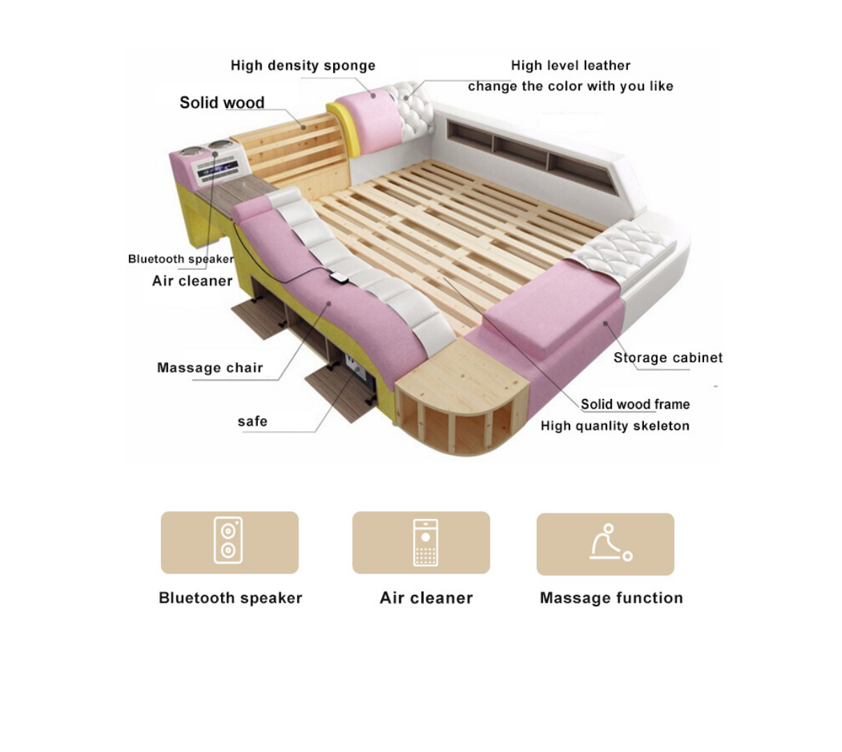 Luksusa divguļamais multifunkcionālais gultas piederumus ūdensmadracis 180x200 ar USB radio mūziku