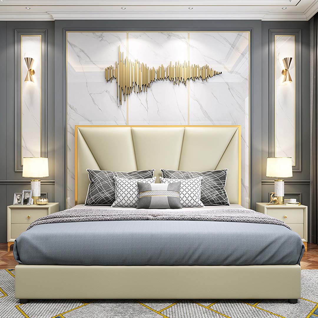 Gultas koka gultas luksusa viesnīca, klasiskais divguļamais gultas statnis māja ir īpaši dizainēta un izgatavota, lai piedāvātu augstas kvalitātes guļamvietu ar modernu piesitienu. Šī gulta ir aprīkota ar guļamās virsmas izmēriem 180 x 200 cm, nodrošinot komfortablu un plašu guļamo vietu lieliskam miegam. Gultas statnis ir izgatavots no koka ar mākslīgo ādu, kas piešķir tai eleganci un izturību. Tā izmēri ir aptuveni 208 cm garumā, 140 cm augstumā un 182 cm platumā, padarot to par ideālu izvēli viesnīcām vai mājām ar klasisku interjeru.