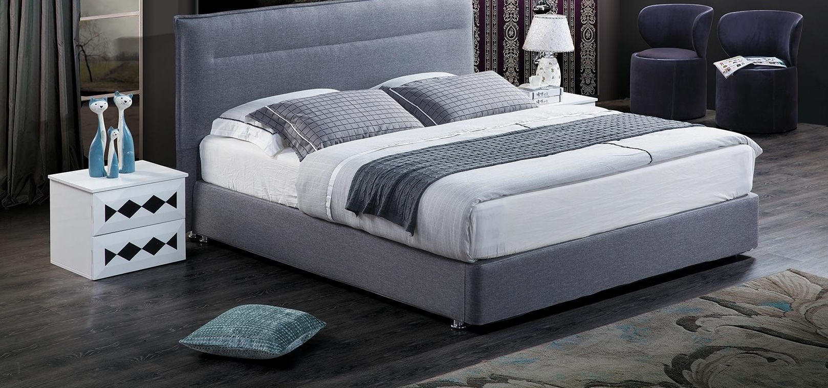 Jums iepatiksies šī Luksusa Boxspring gulta audums, viesnīcas zilā gulta, guļamistabas mēbeles dizains dubultgulta. Šī gulta izceļas ar augstu kvalitāti un izsmalcinātu dizainu. Guļamā platība 180x200cm nodrošina ērtu un plašu guļvieta, savukārt krāsa kā attēlā piesaka eleganci jebkurai telpai. Materiāls: Koka rāmim un kvalitatīvam tekstilam garantē izturību un komfortu, nodrošinot mierīgu un atpūtinošu miegu. Šī gulta ir ideāla izvēle tiem, kas novērtē gan stilu, gan funkcionālumu.